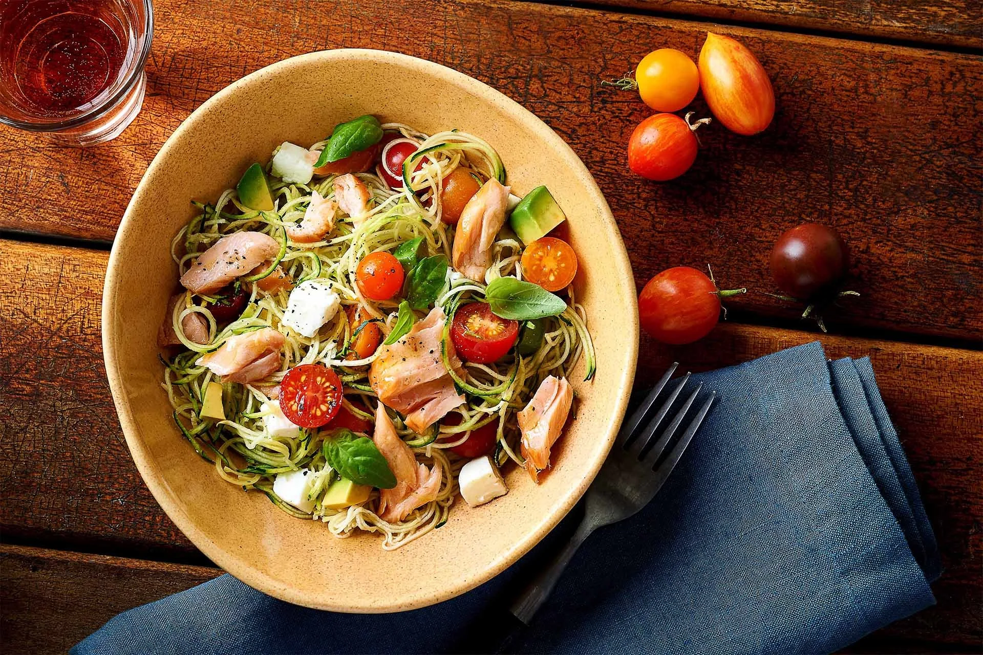 Mediterranean Zucchini Noodles With Smoke Roasted Salmon